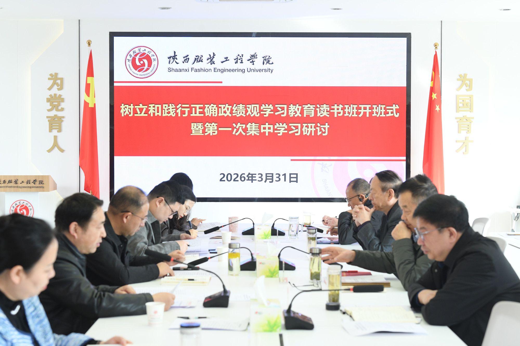 陕服新闻网讯(李文斌)3月31日上午,学校党委在行政楼326会议室召开树立和践行正确政绩观学习教育读书班开班式暨第一次集中学习研讨会,对学校举办树立和践行正确政绩观学习教育读书班进行安排部署,开展第一次集中学习研讨。全体校领导、党委委员、纪委委员、二级学院班子成员、职能部门负责人参加会议。学校党委书记王岗主持会议并讲话。会上,集中学习了习近平总书记在省部级主要领导干部学习贯彻党的二十届四中全会精神专题研讨班上的重要讲话精神、...