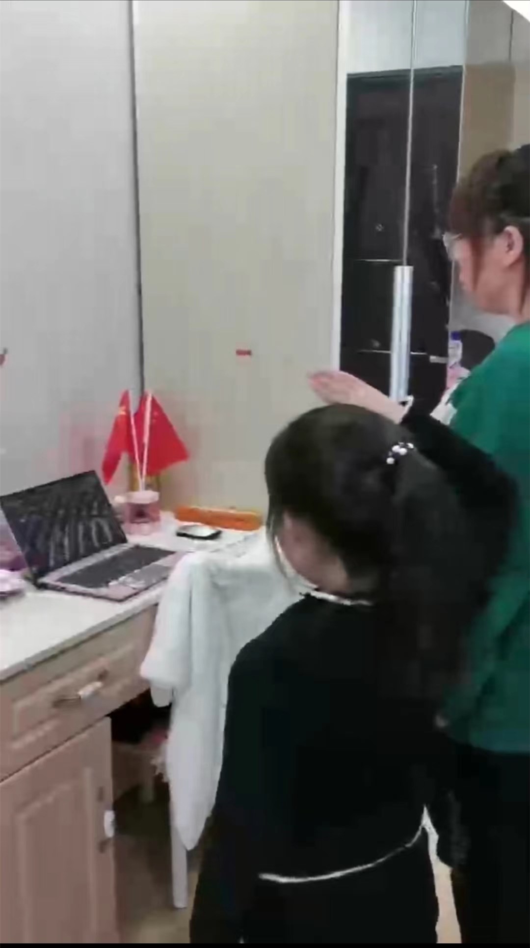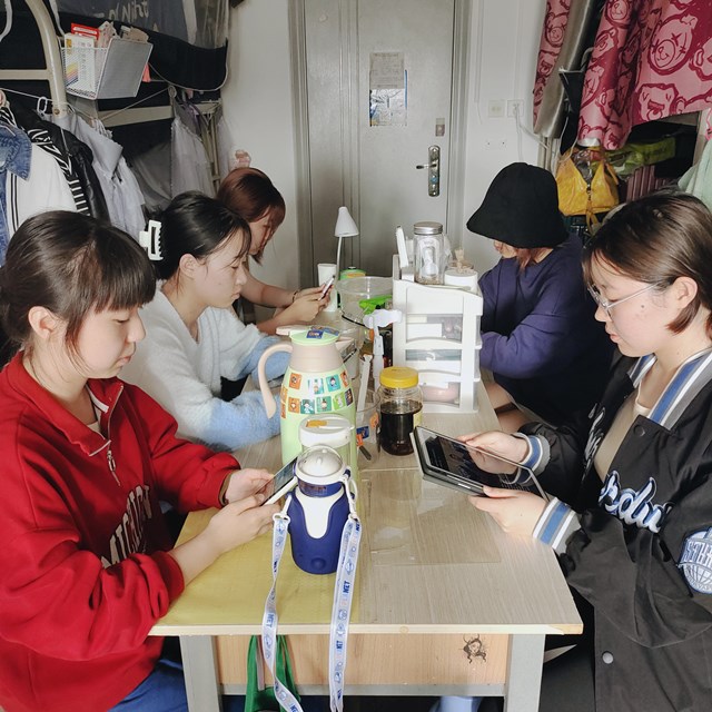 (学生在宿舍、居家办公教师在家收看开幕会实况)