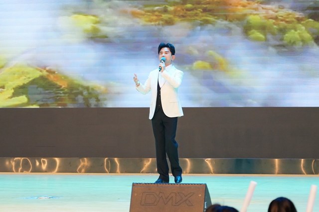 应广大师生强烈要求,吕明董事长精彩独唱《我的中国心》《你笑起来真好看》等歌曲,他的嗓音清澈明亮,高低音转换自如,真正演绎了音乐的独有内涵和情感,传达了董事长希望全体师生爱国担当、共同打造幸福大学的真挚情感。