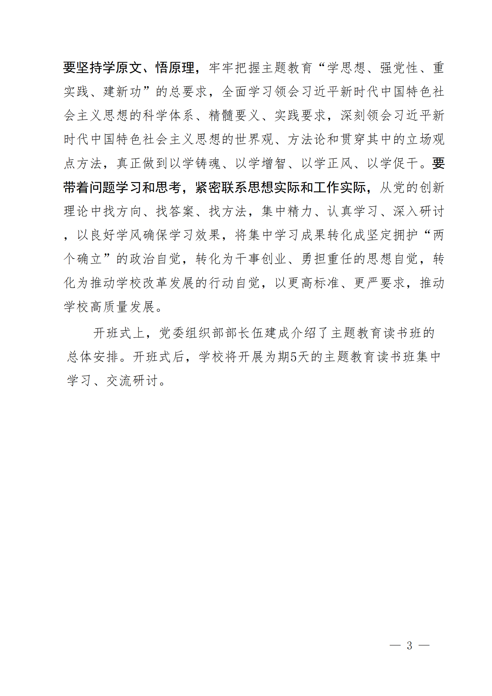 (第3期)我校举行学习贯彻习近平新时代中国特色社会主义思想主题教育领导干部读书班开班式
