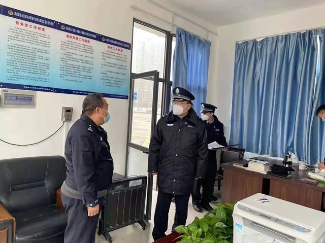 薛刚支队长检查了我校疫情防控工作和安全保卫工作,慰问了我校警务室警务人员和安保人员,高度肯定我校疫情防控工作和安全保卫工作。