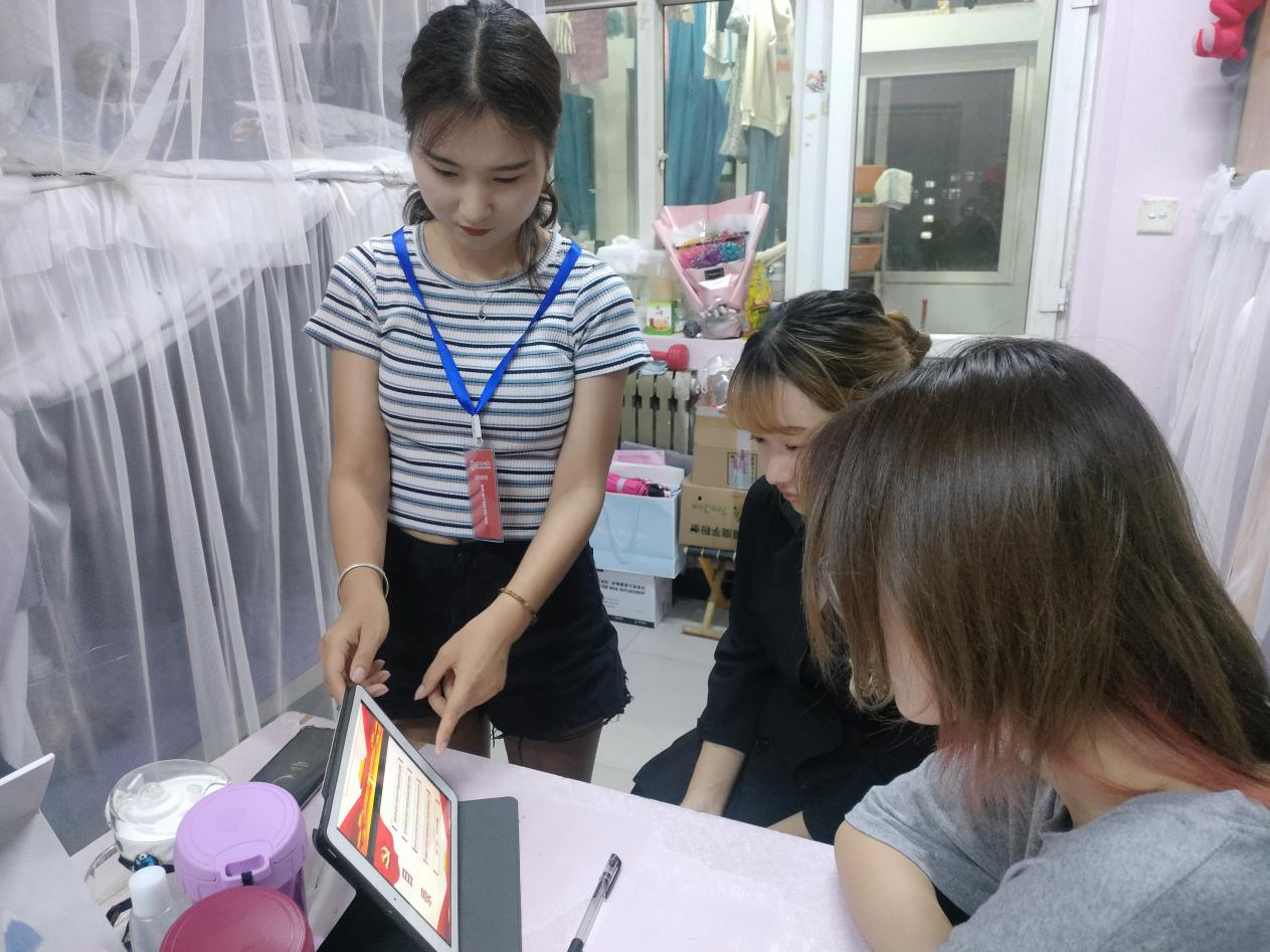 陕服新闻网讯(郭亭亭)6月15日,学生钱杏、学生康航、学生付格格等组成的党史宣讲团在6号楼521宿舍、10号楼402宿舍及6号楼519宿舍进行宣讲。本次活动的主题是“四史教育进公寓、红色文化育新人”。