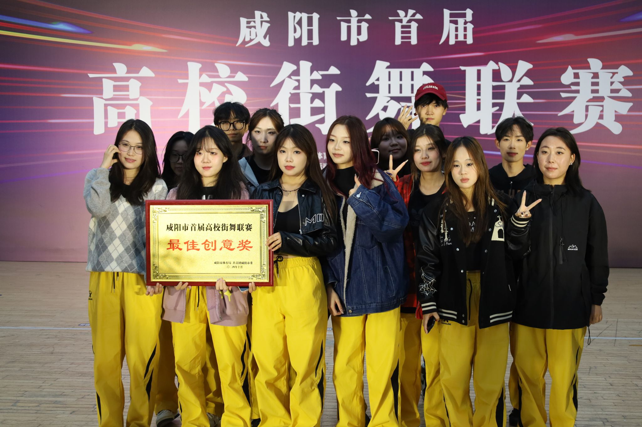 陕服新闻网讯(董良超)10月26日,由市体育局、团市委、市体育总会共同主办的咸阳市首届高校街舞联赛在陕西国际商贸学院圆满收官。我校大学生艺术团表现精彩,取得了最佳创意奖。