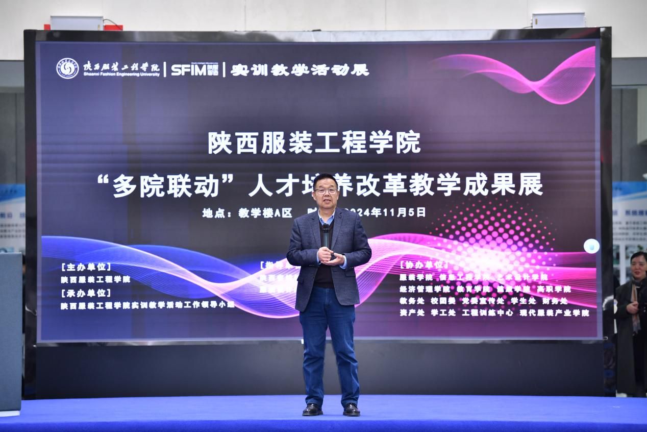 陕服新闻网讯(李玉玫) 为全面提升学生的文化素养,帮助学生拓展专业以外知识领域,丰富学生知识与技能的多样性,遵循我校“中西融汇、古今贯通、文理兼修、应用为本”的办学思路,体现“思政引领,德育先行、三维培养、三融教育、信息支撑、工程提能、承创并举、协同发展”的办学特色,大力推进实践教学体系的建设与改革,适应应用型人才培养需求,学校于11月5日下午举办“多院联动”人才培养改革教学成果展暨X+Y服装实训、工程训练第一期实训活动总结大会。陕西服装工程学院董事长吕明博士、副董事长吕超、校长姜寿山、党委书记王岗、常务副校长黄新民、副校长吴俊林、潘庆才、党委副书记刘继兵、校长助理罗文谦出席活动。