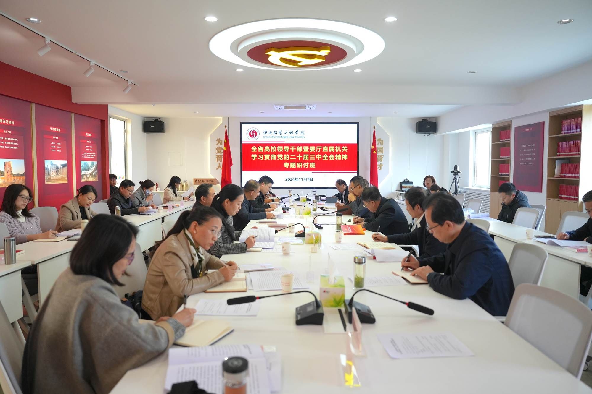 陕服新闻网讯 (菅建伟)11月5日至8日,省委教育工委、省教育厅举办全省高校领导干部暨委厅直属机关学习贯彻党的二十届三中全会精神专题研讨班,研讨班以视频会议形式召开,我校在行政中心第三会议室设分会场,全校中层以上领导干部参加了学习。