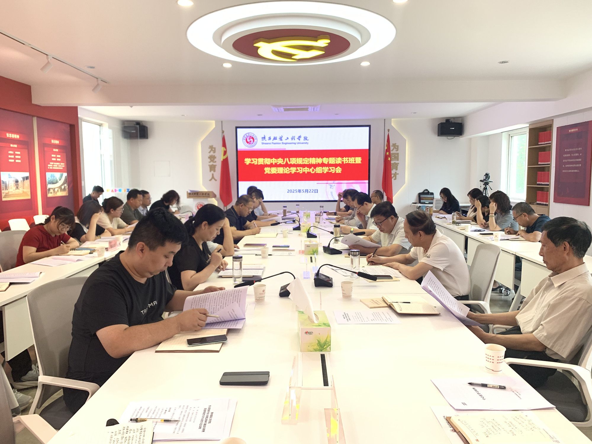 陕服新闻网讯(菅建伟) 5 月 22 日上午,我校在行政中心 326 会议室召开了学习贯彻中央八项规定精神专题读书班第3次集中学习暨党委理论学习中心组学习会。校党政领导班子成员、党委委员、纪委委员,各院党委、党总支、直属党支部书记,机关各党支部书记等30余人参加会议。会议由党委书记王岗主持。