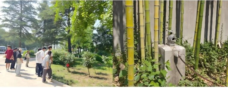 周至校区丰富多样的植物资源构筑起一座天然的 “植物课堂”。曹雪阳、陈文静两位教师引领学生漫步于校园小径,穿梭在绿树繁花之间,开展系统的景观植物识别实践活动。
