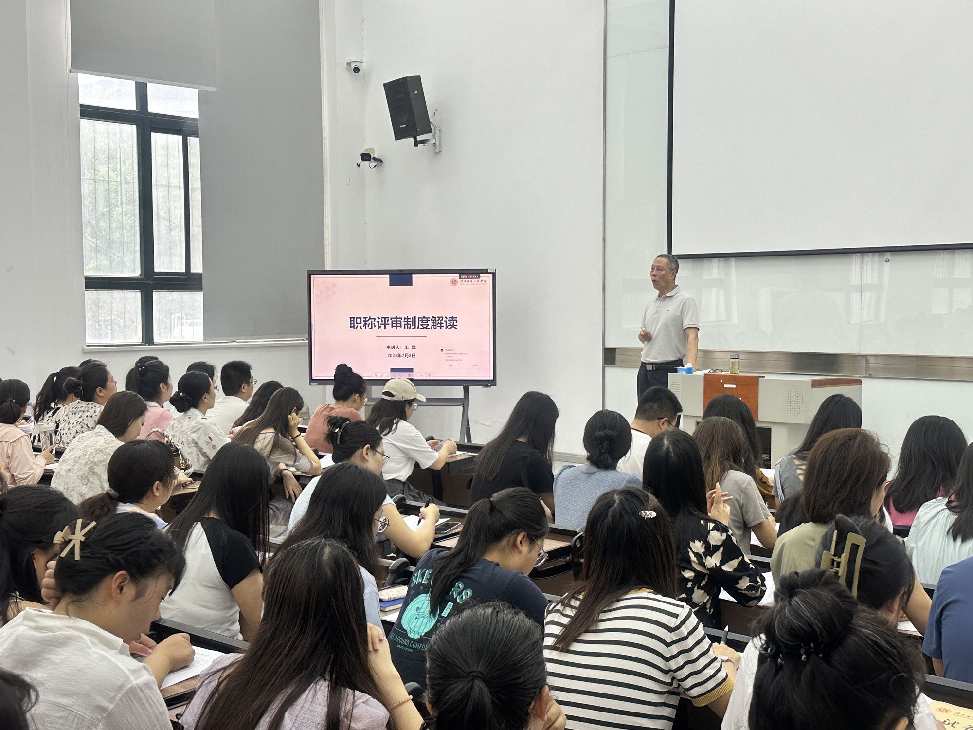 解读环节结束后,还进行了现场答疑,针对教师们关于职称评审工作的各种疑惑与问题,王军逐一进行了详细解答,使参会教师们对职称评审政策、申报条件及流程的理解更为清晰明确。