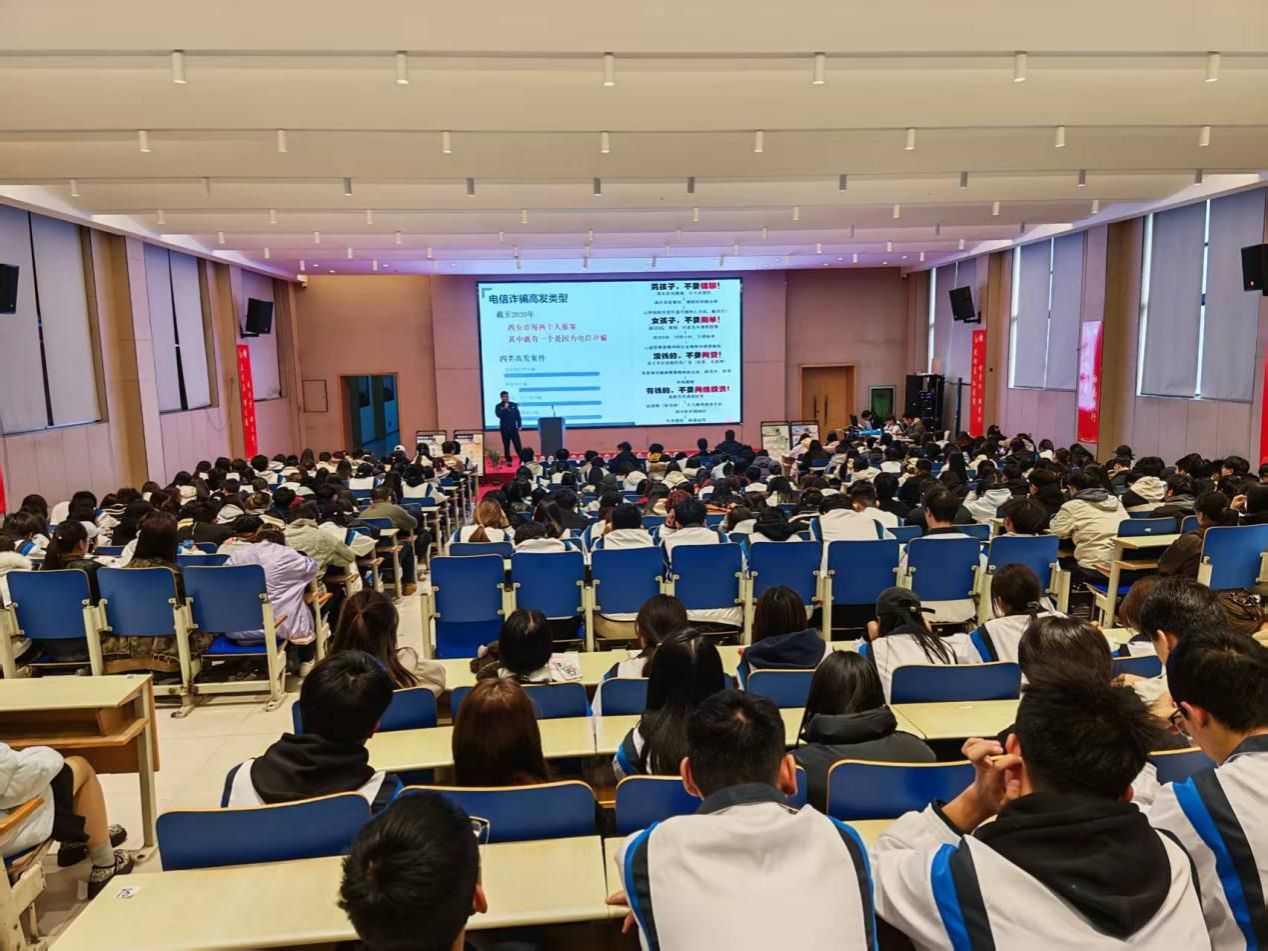 陕服新闻网讯(张维峰)为让学生全面了解当前网络电信诈骗类型和手法,增强安全防范意识和辨别能力,树立正确的消费观和价值观,提高防范意识,筑牢安全防线,10月21日下午学工部联合保卫处在E1-4报告厅举行预防网络电信诈骗报告会,邀请西咸新区公安局反诈中心姚金虎警官作报告。